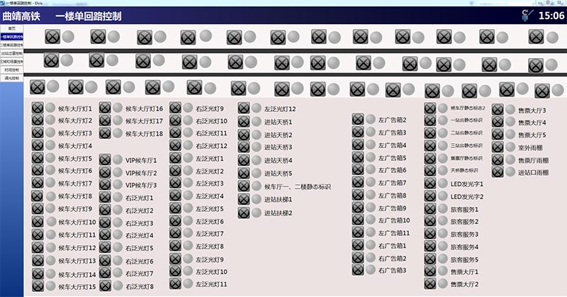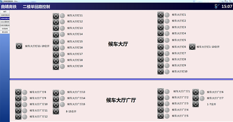 二樓單控界面見圖,主要是控制二樓候車大廳和廣廳的單回路控制。