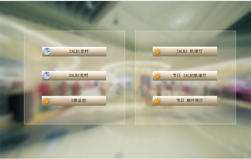 智能照明公共照明控制界面見下圖,主要實現(xiàn)公共照明控制,可統(tǒng)一控制,也可單獨控制,控制狀態(tài)可在界面上直接顯示出來,同時可以設置各照明回路自動亮滅時間。