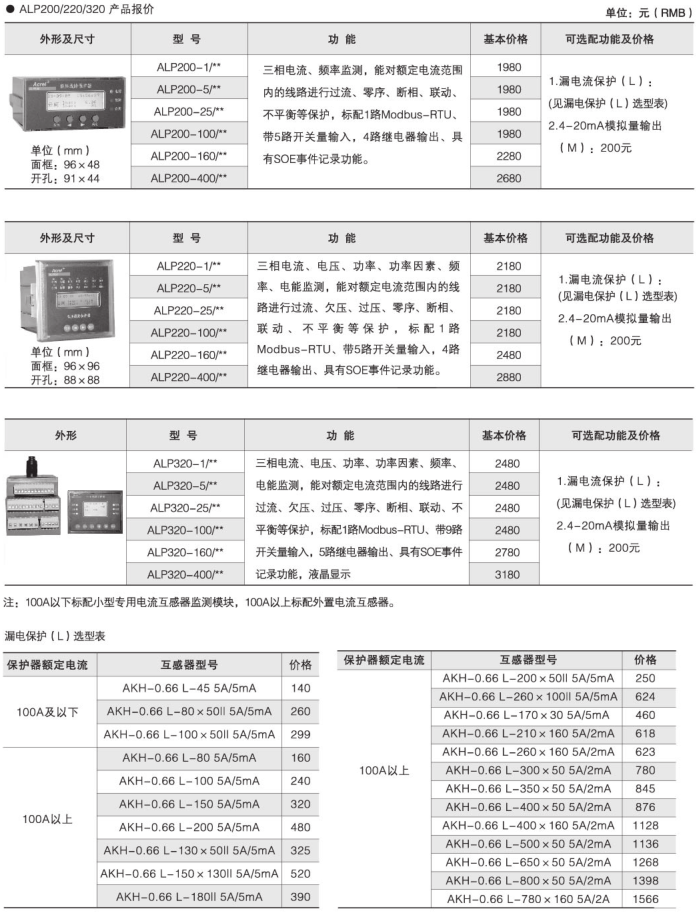 技術要求:輸入電壓AC 220V;工作頻率50Hz;電流變比200A/5A;漏電保護KB2模塊;準確級0.5。