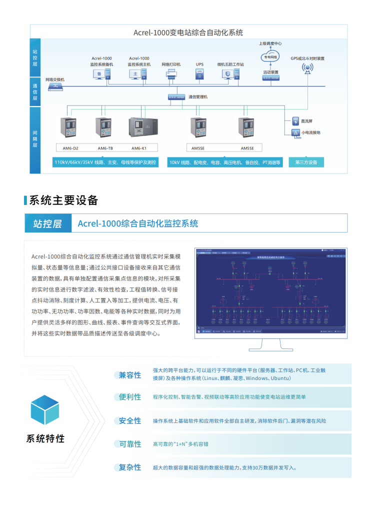 Acrel-1000變電站綜合自動(dòng)化監(jiān)控系統(tǒng)是我司根據(jù)電力系統(tǒng)自動(dòng)化及無(wú)人值守的要求,利用計(jì)算機(jī)技術(shù)、現(xiàn)代化電子技術(shù)、通信技術(shù)和信息處理技術(shù)等對(duì)變電站設(shè)備運(yùn)行僅從測(cè)量、控制。本系統(tǒng)具有保護(hù)、遙測(cè)、遙信、遙脈、遙詞、遙控功能,可實(shí)現(xiàn)無(wú)人或少人值守功能,為用戶變電站的安全、可靠運(yùn)行提供了解決方案。