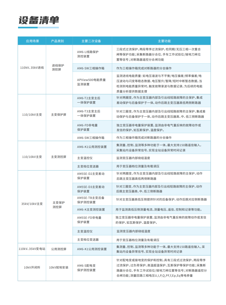 公司具備110kV及以下電壓等級(jí)用戶變電站的全系列產(chǎn)品及整站綜合自動(dòng)化解決方案,方案主要涵蓋了監(jiān)控系統(tǒng)、通訊管理機(jī)、測(cè)控裝置、繼電保護(hù)裝置、測(cè)量表計(jì)、智能操控等產(chǎn)品。
