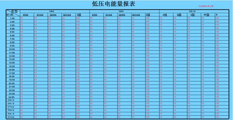 查詢各回路或設備指定時間的運行參數,報表中顯示電參量信息應包括:各相電流、三相電壓、總功率因數、總有功功率、總無功功率、正向有功電能等。