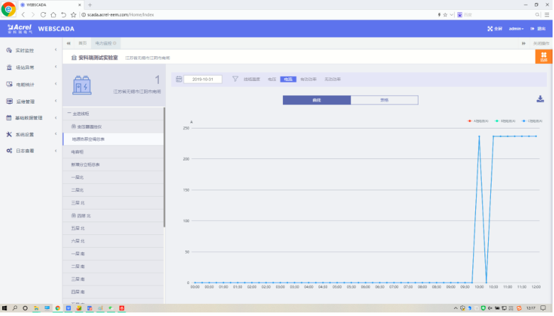 設備數據頁面顯示各設備的電參量數據以及曲線。