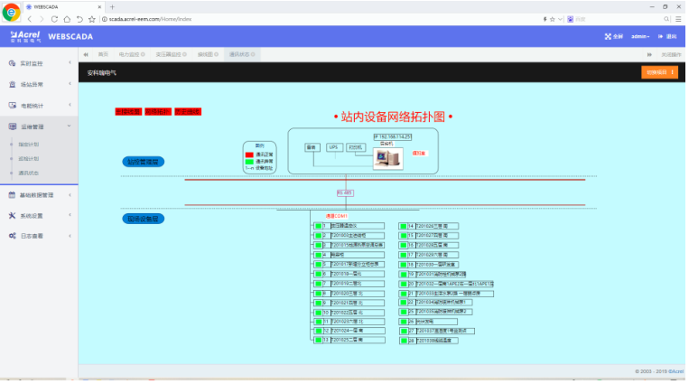 安科瑞Acrel-2000Z電力監控系統支持實時監視接入系統的各設備的通信狀態,能夠完整的顯示整個系統網絡結構;可在線診斷設備通信狀態,發生網絡異常時能自動在界面上顯示故障設備或元件及其故障部位。