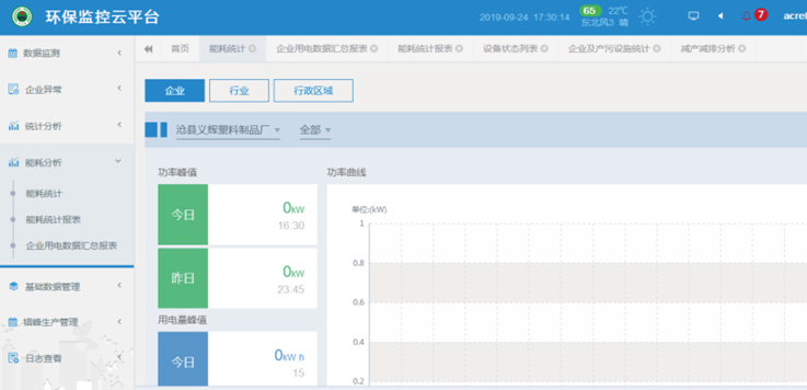 實(shí)時監(jiān)控:采集現(xiàn)場用電信號,可以查看企業(yè)、車間設(shè)備、監(jiān)測點(diǎn)各級的統(tǒng)計情況,包括生產(chǎn)狀態(tài)、設(shè)備狀態(tài)、電流、電壓、用電、功 率等,默認(rèn)顯示昨日/今日曲線,可選擇具體的時間并生成曲線,其中用電和功率曲線中包含設(shè)置的設(shè)備啟停閥值,企業(yè)整體用電中顯示企業(yè)停產(chǎn)的閾值。