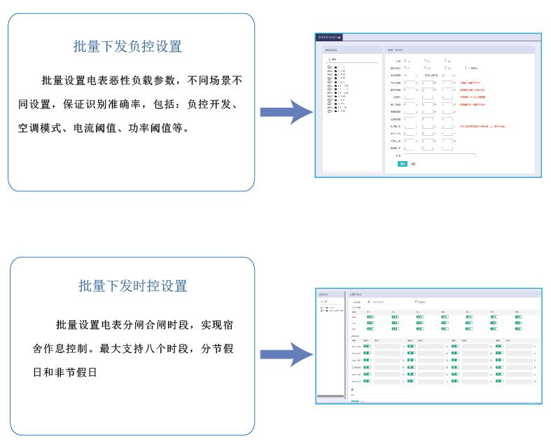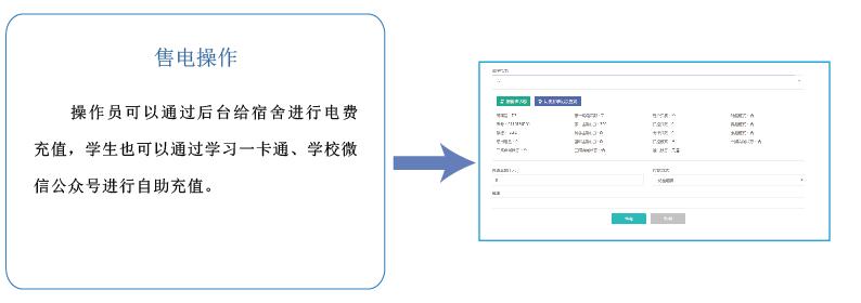 高校宿舍預付費電控系統集電能計量、收費管理、用電過程管理等功能于一體,具備遠程實時抄表計量、控制學生作息、惡性負載識別預警、校園一卡通自助繳費、微信查詢、打印用能報表等功能,創(chuàng)建節(jié)約校園、安全校園,方便校方進行信息化管理,并支持和智慧校園系統的數據對接。