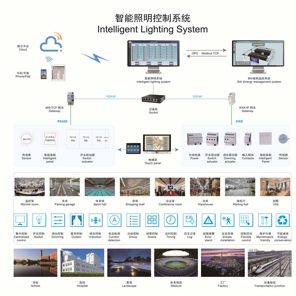 辦公樓、商場、圖書館、會展中心等需要對照明進行智能控制的場合。